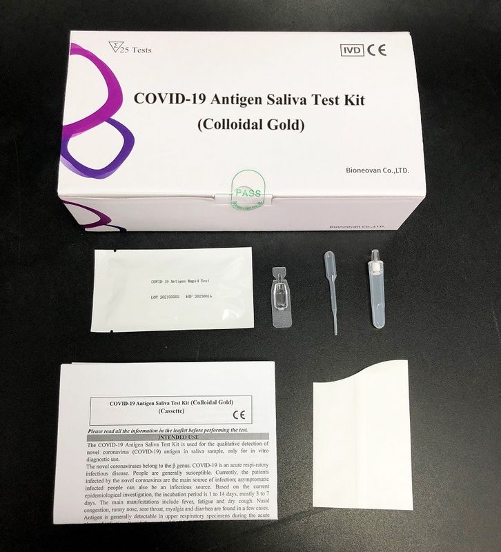 Kit Uji Saliva Antigen COVID-19 digunakan untuk deteksi kualitatif antigen virus corona baru (COVID-19) dalam sampel air liur, hanya untuk penggunaan diagnostik in vitro.